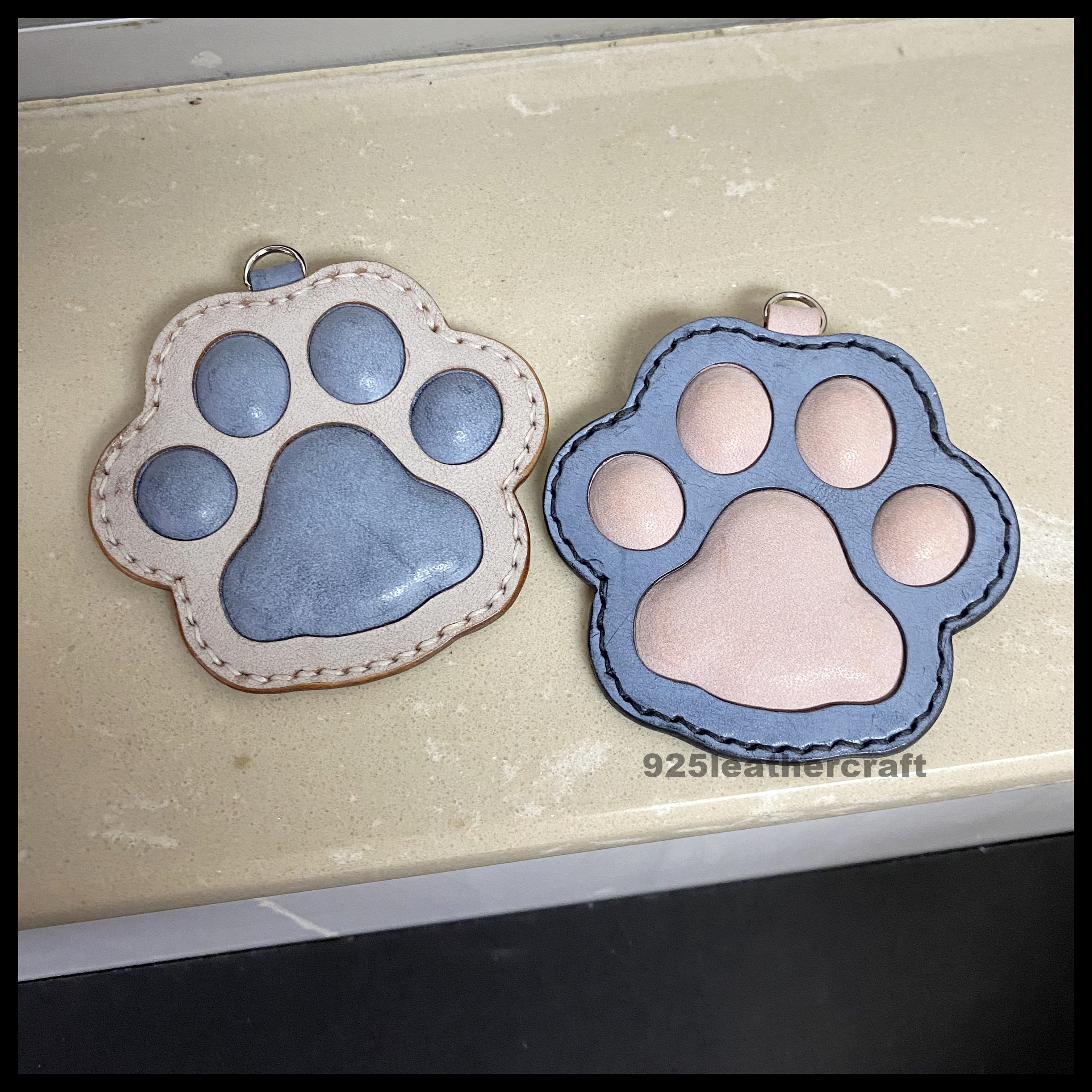 銀革手作 意大利 擦蠟皮 植鞣革 頭層牛皮 貓貓 手掌 迷你 八達通套 匙扣