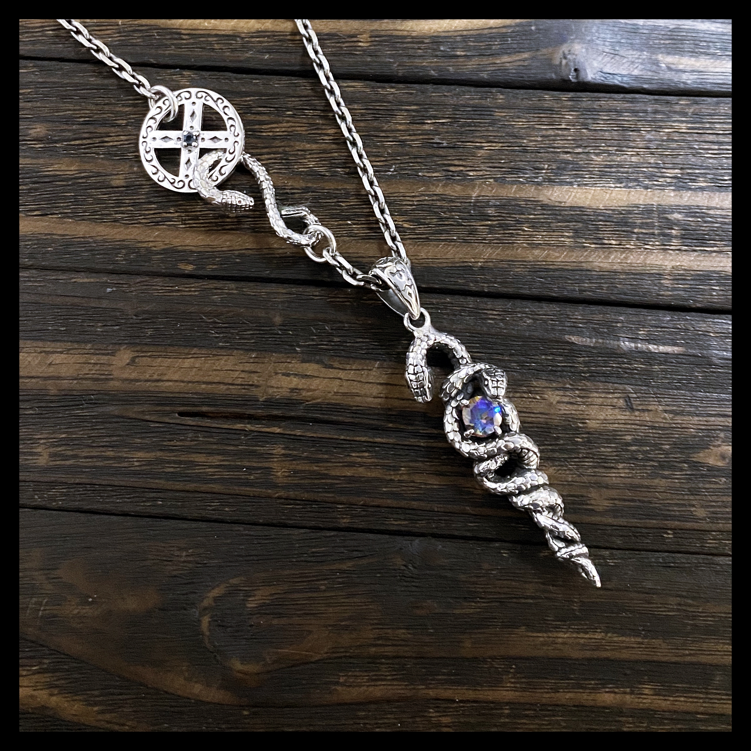 銀革手作 日本 good vibrations 925 純銀 托帕石唐草輪 唐草鷹鈎 細角 頸鏈