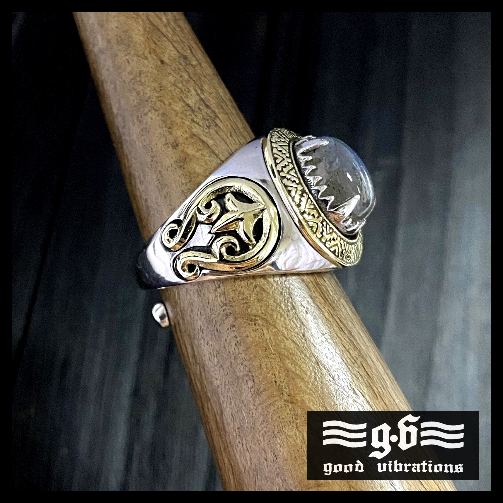 銀革手作 日本 good vibrations 925 純銀 拉長石 印第安 圖騰 naja 戒指