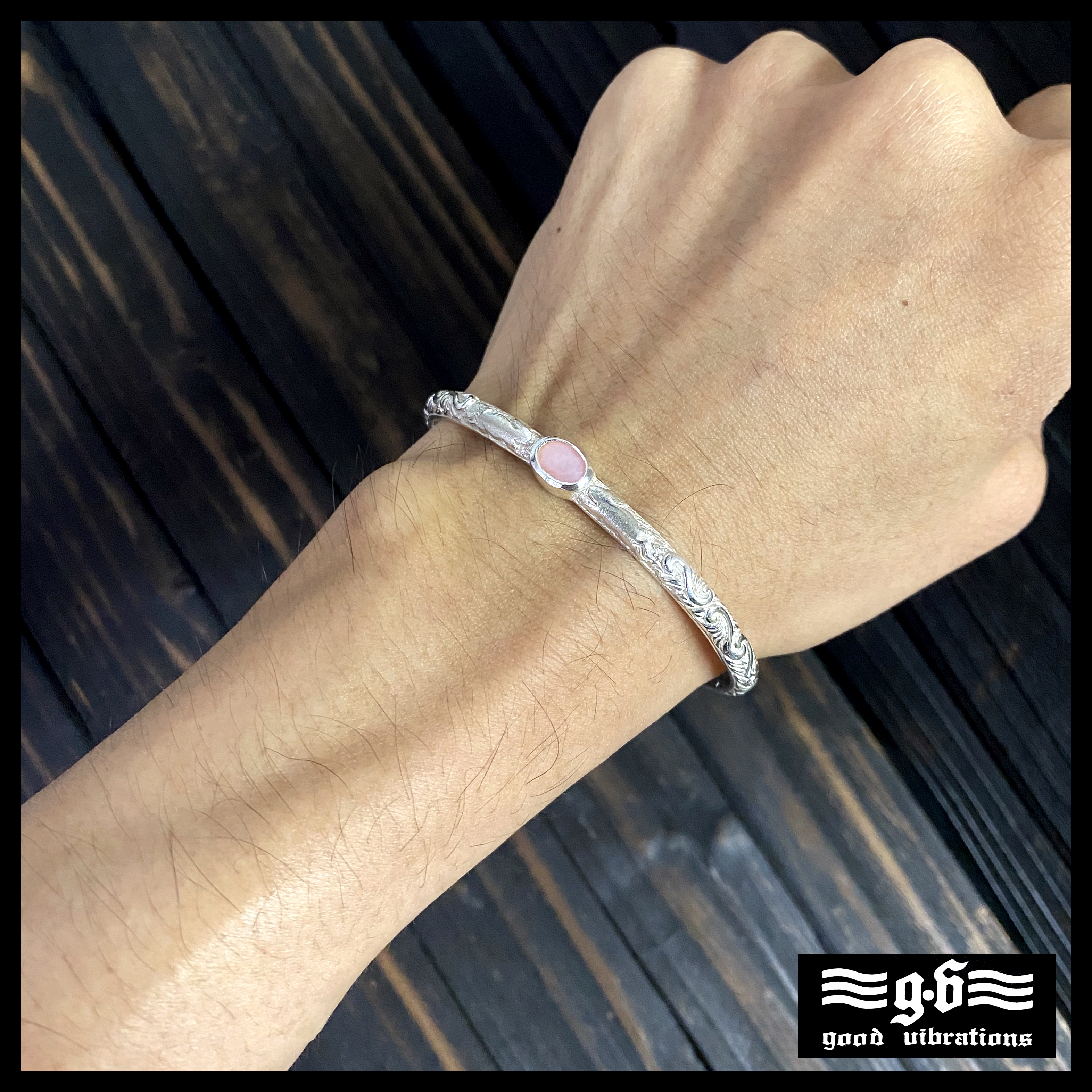 銀革手作 日本 good vibrations 925 純銀 粉紅澳寶 兔仔 唐草紋 手鐲