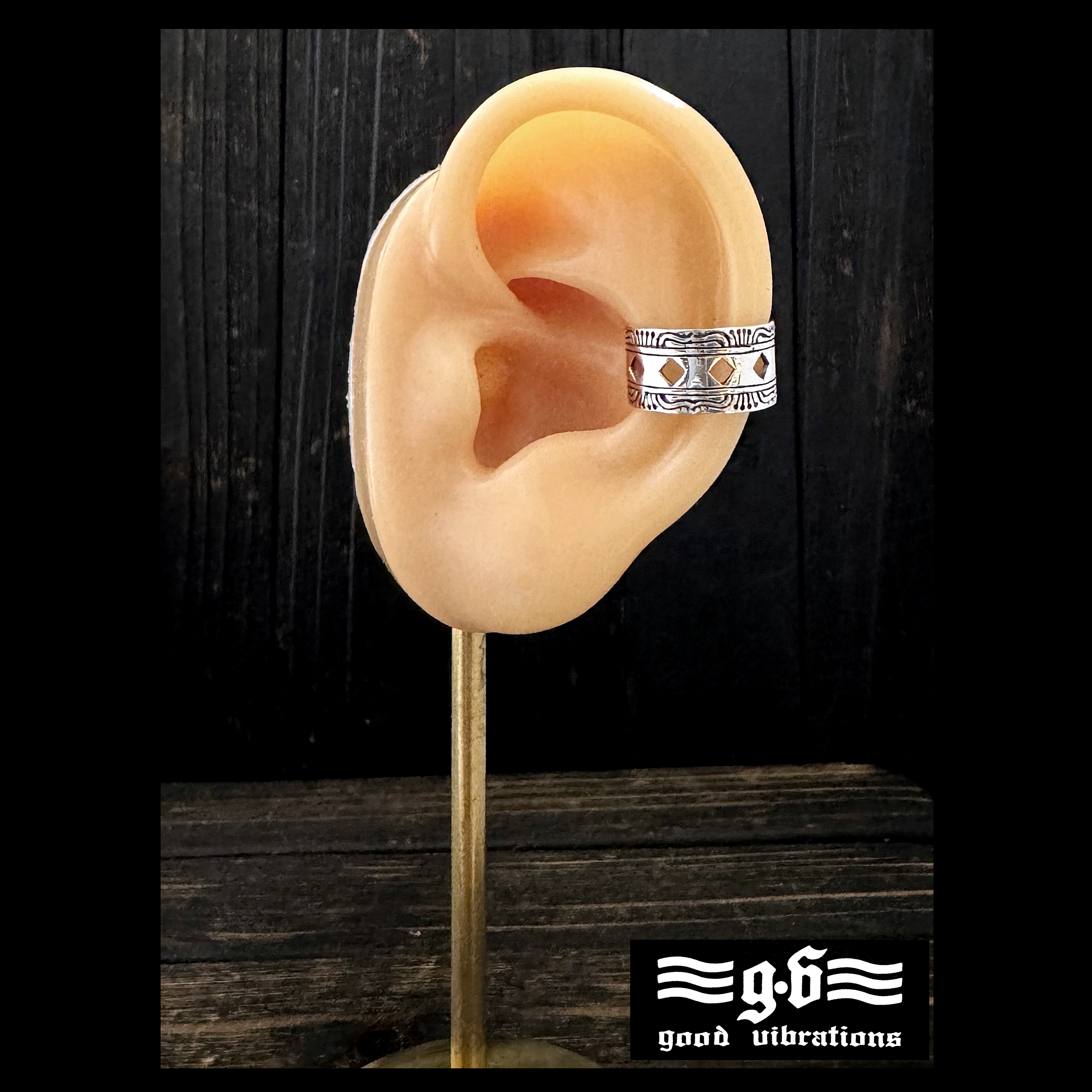 銀革手作 日本 good vibrations 925 純銀 菱格 圖騰 耳夾