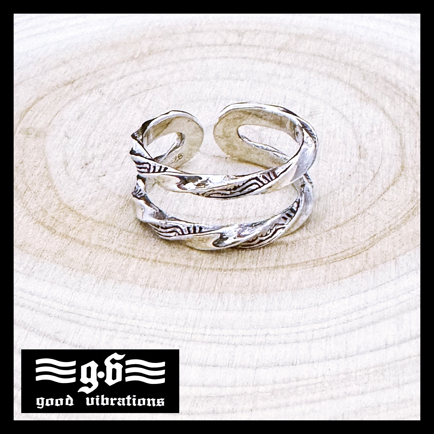 銀革手作 日本 good vibrations 925 純銀 雙行 仿兩隻 扭紋 圖騰 戒指