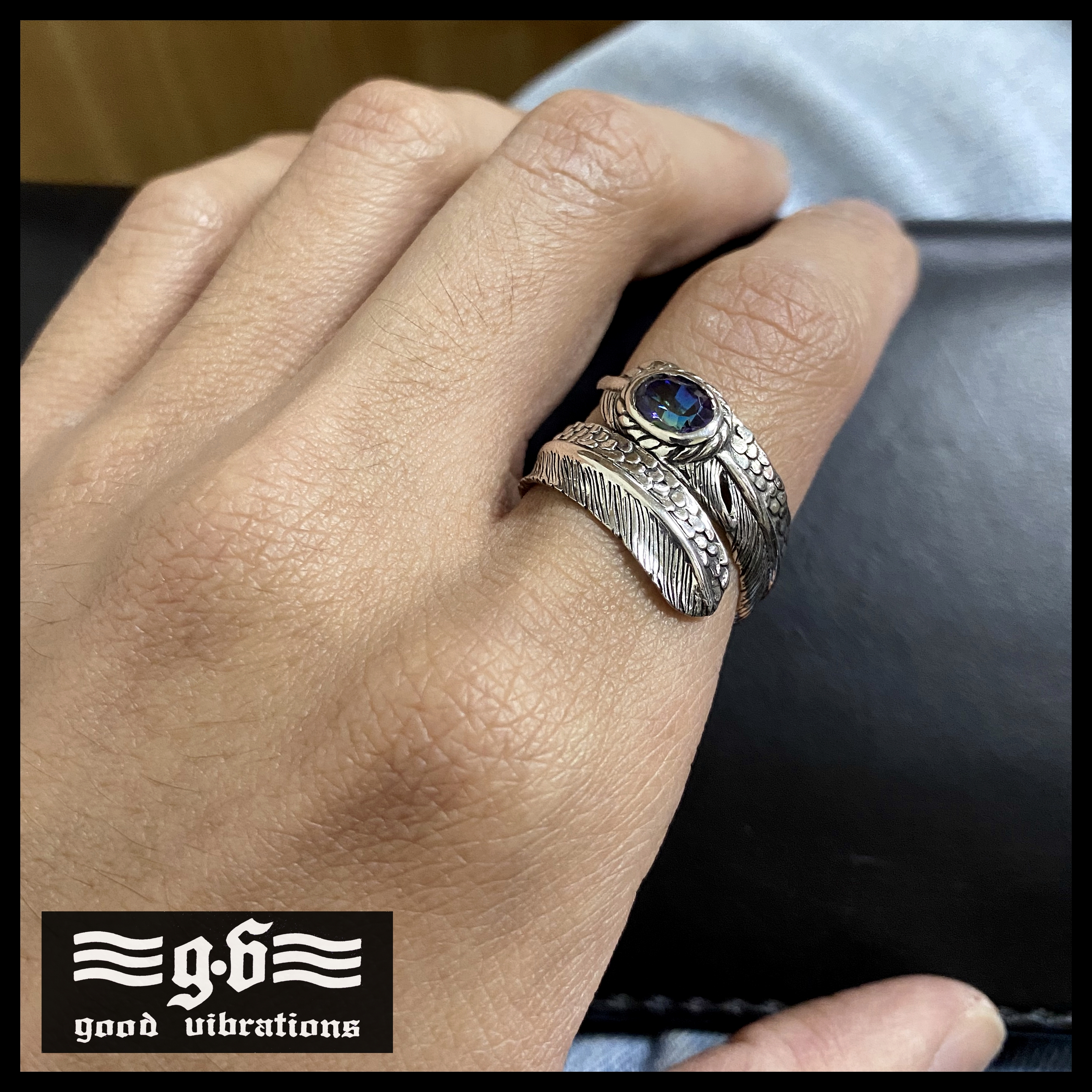 銀革手作 日本 good vibrations 925 純銀 mystic quartz 半羽半鱗 蛇紋 羽毛 戒指