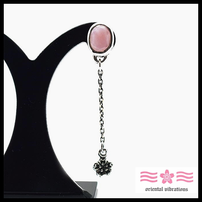 銀革手作 日本 oriental vibrations 925 純銀 粉紅澳寶 和柄 櫻花 耳環