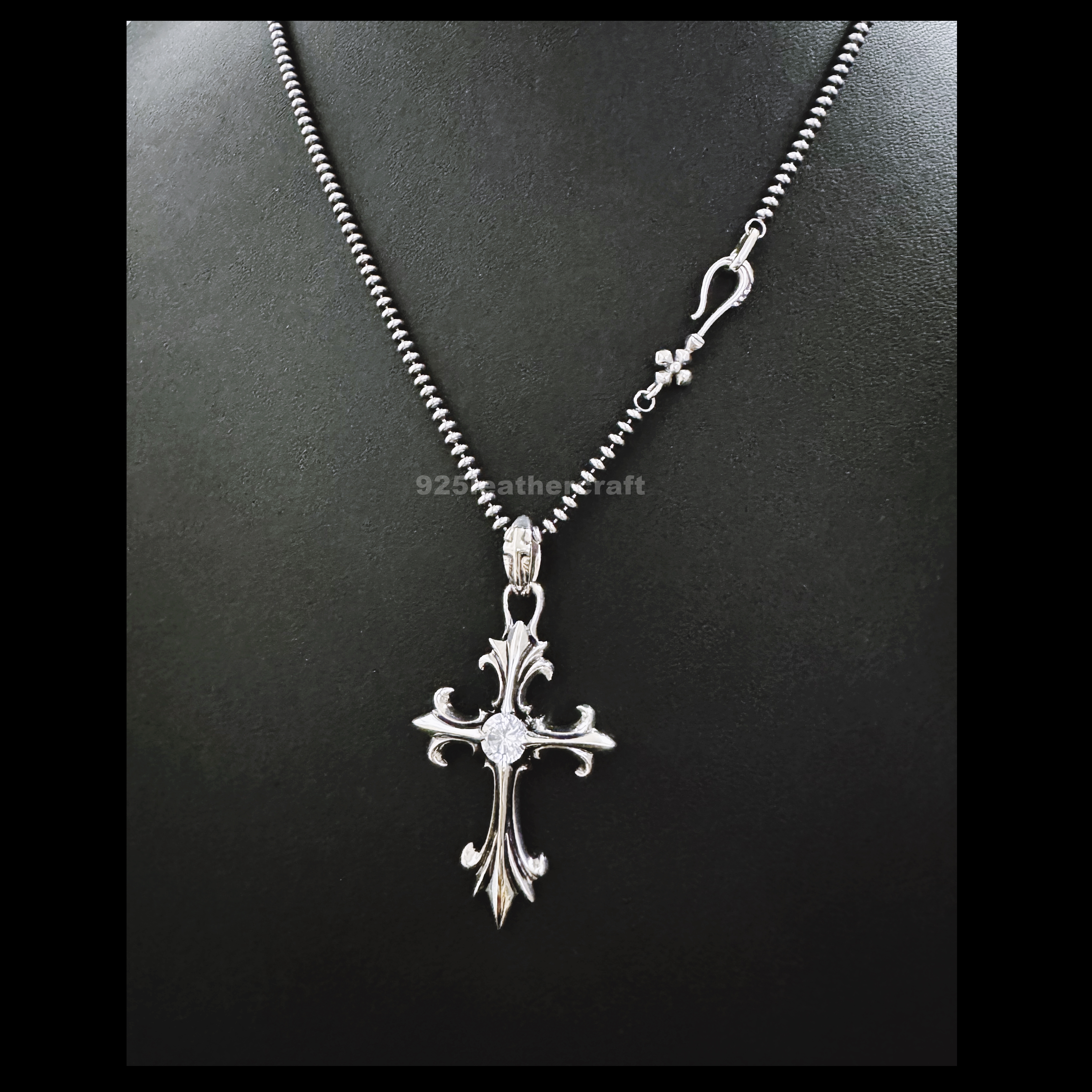銀革手作 925 純銀 十字鈎扣 扁珠 頸鏈
