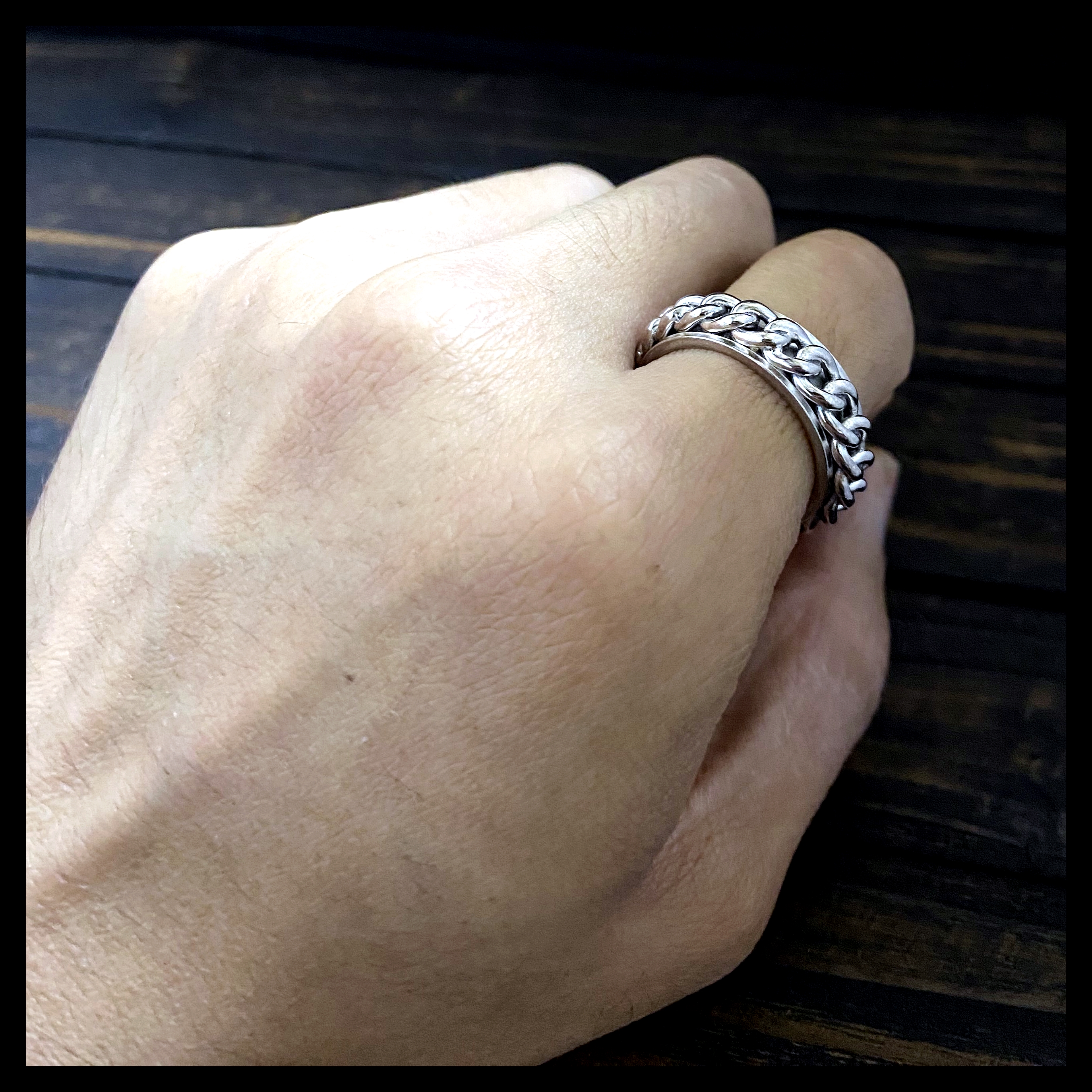 牛仔鏈戒指,可轉動設計,做工細緻,別具一格 材料:925純銀 戒指粗約 7mm 尺寸:#16,#18,#20,#22,#24,#26 配備包裝盒和擦銀布 現貨產品,付款後兩天內安排寄貨或直接到門市購買。 訂購產品,需時 2-4 個星期時間製作及運送,貨到後會立即安排寄貨或到門市取貨