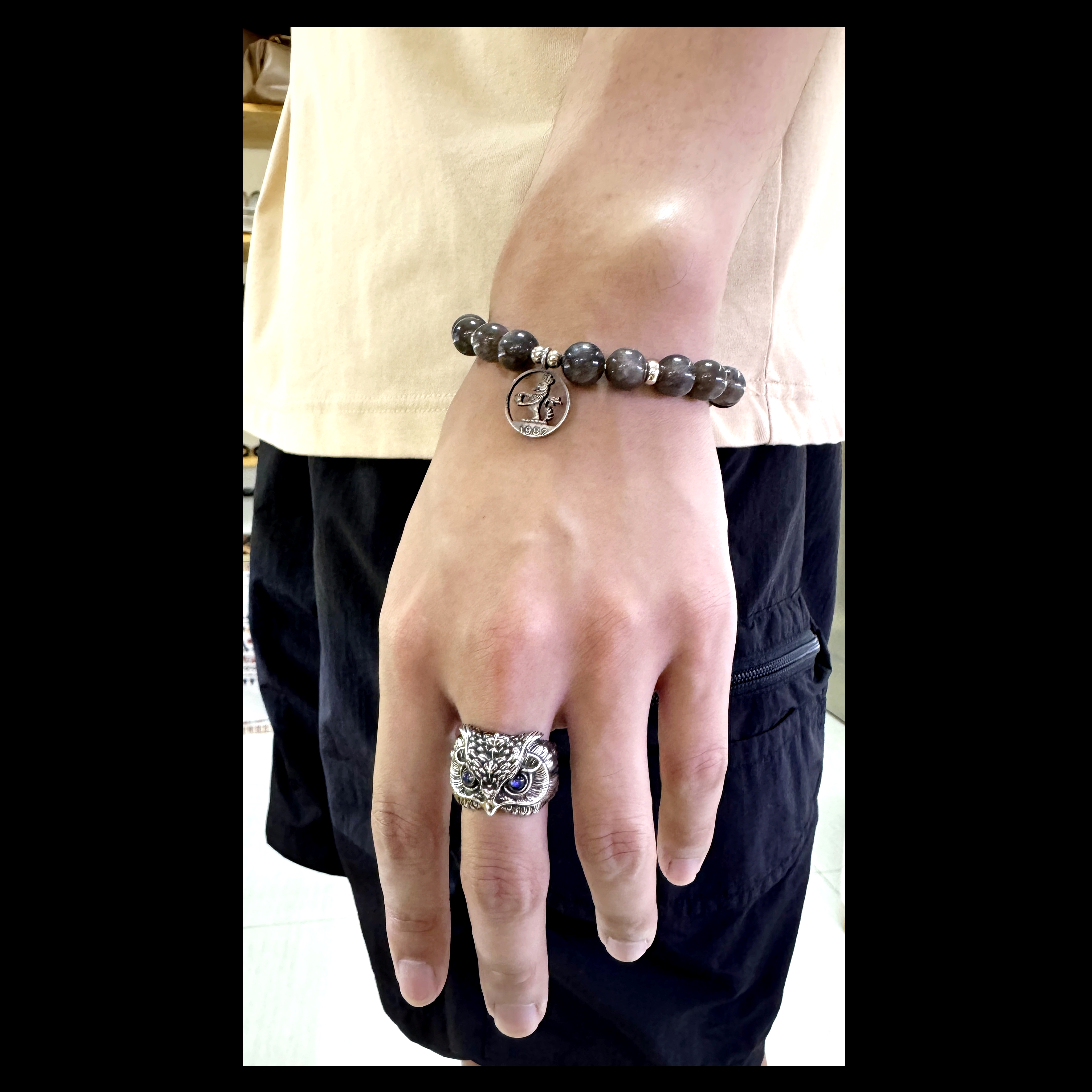 銀革手作 925 純銀 月亮石 立體 貓頭鷹 戒指