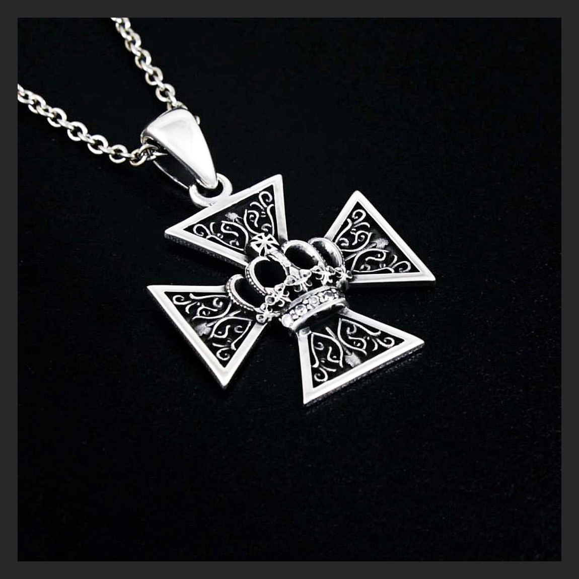 銀革手作 925 純銀 白鋯石 皇冠 十字勳章 吊墜