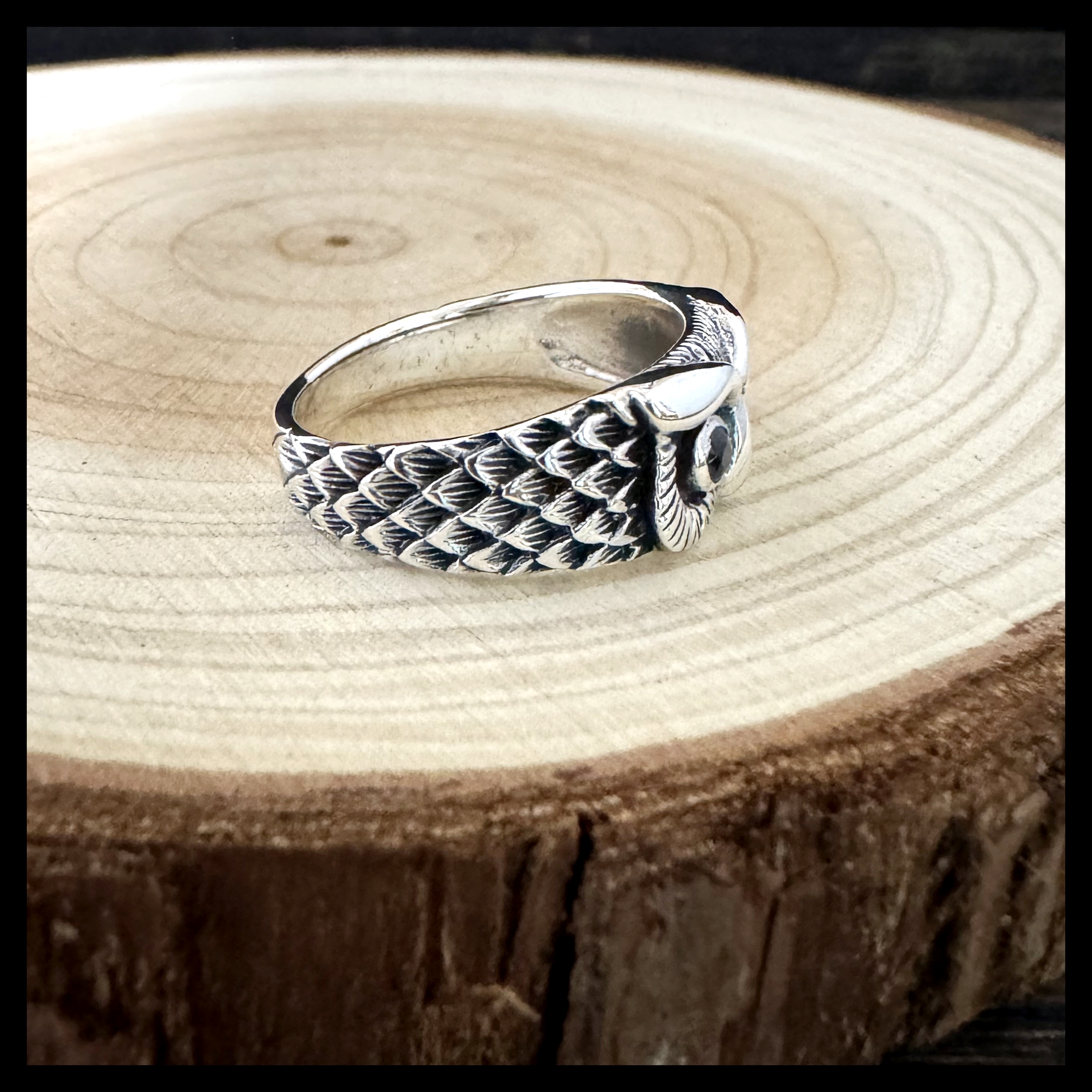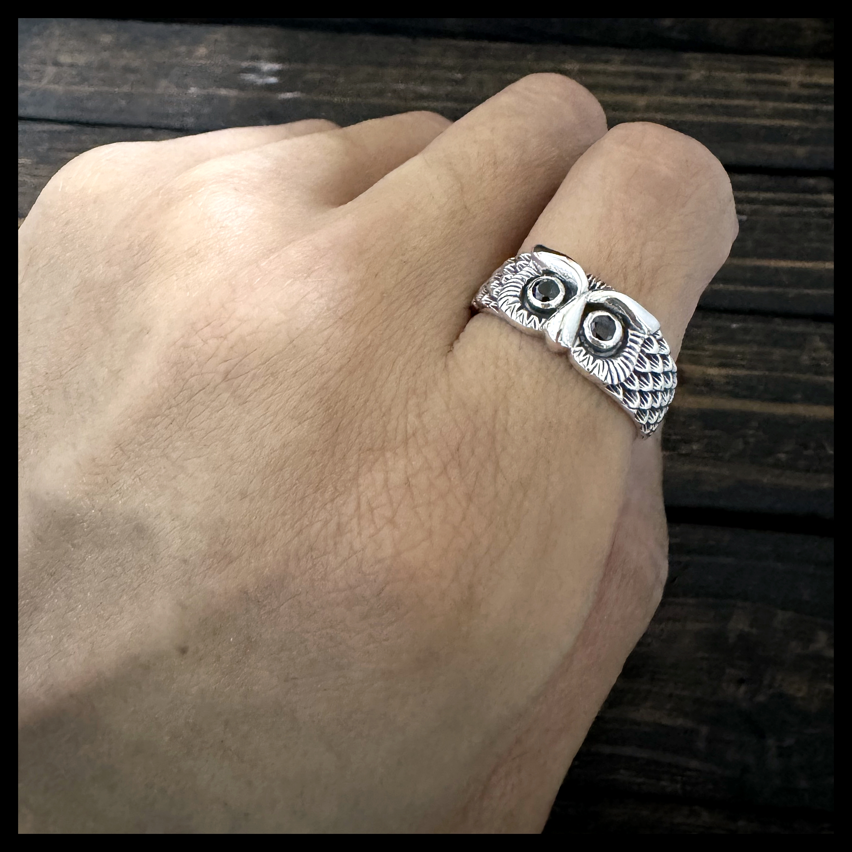 銀革手作 925 純銀 紅黑鋯石 貓頭鷹 戒指
