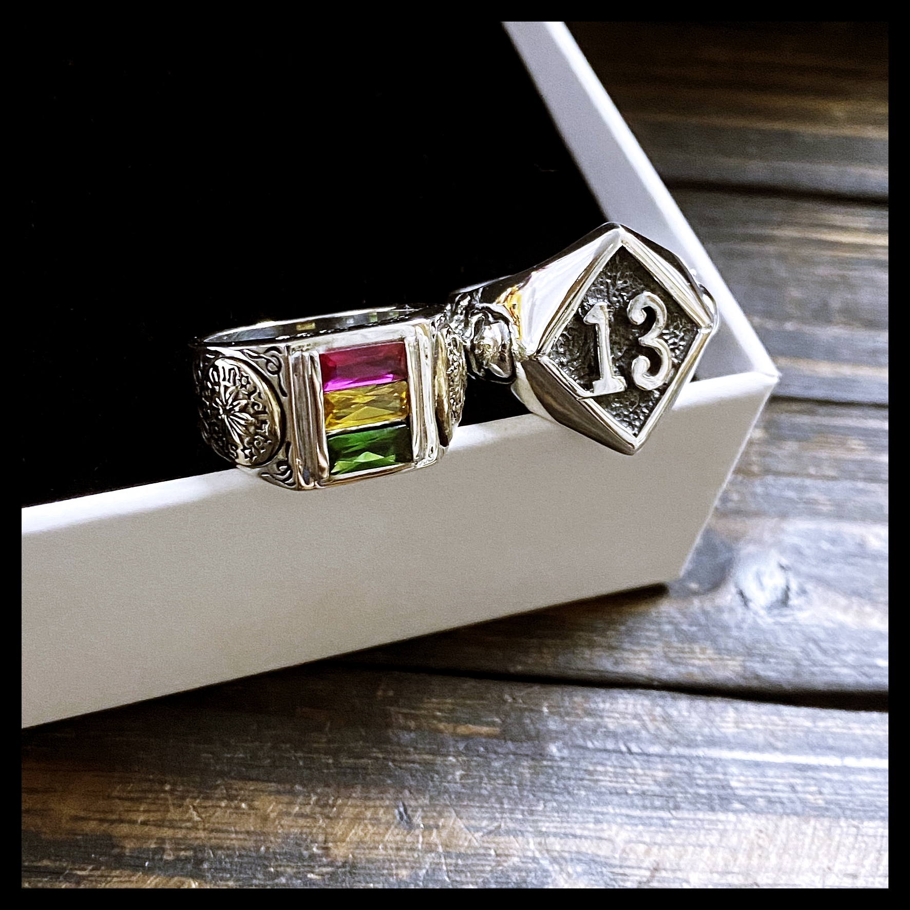 銀革手作 925 純銀 菱形面 幸運 13 骷髏 戒指