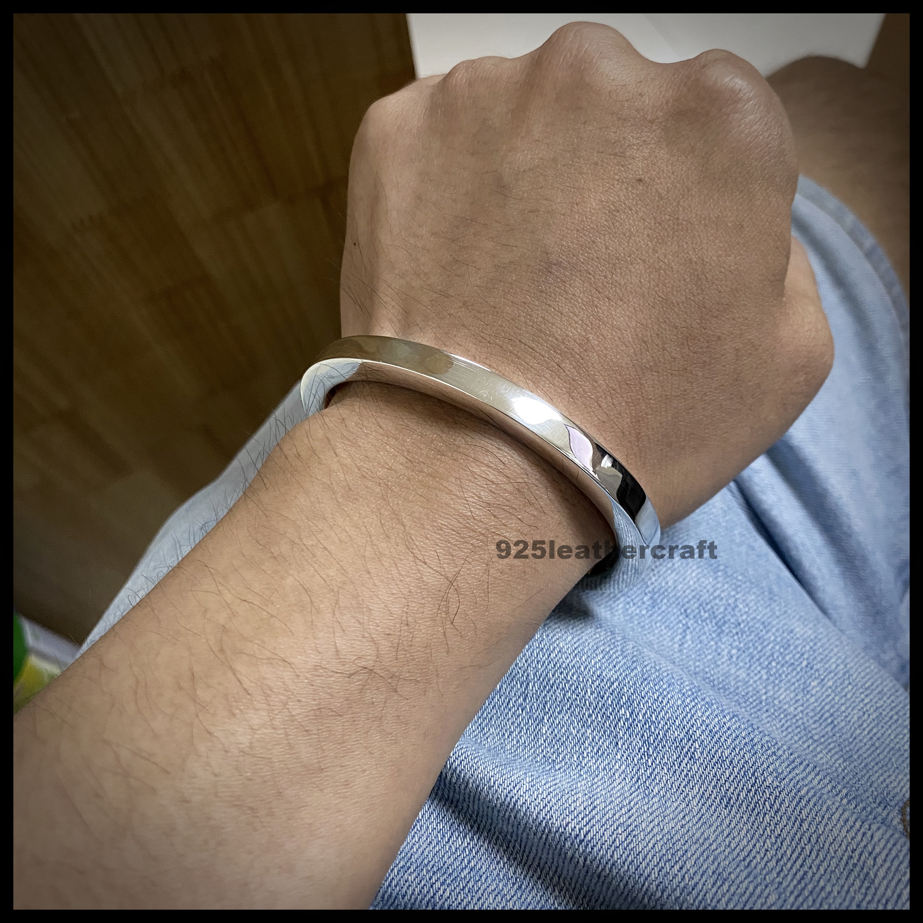 材料:925純銀 手鐲粗約 6mm 按手腕粗度製作 訂造需時約兩個星期 配備包裝盒和擦銀布
