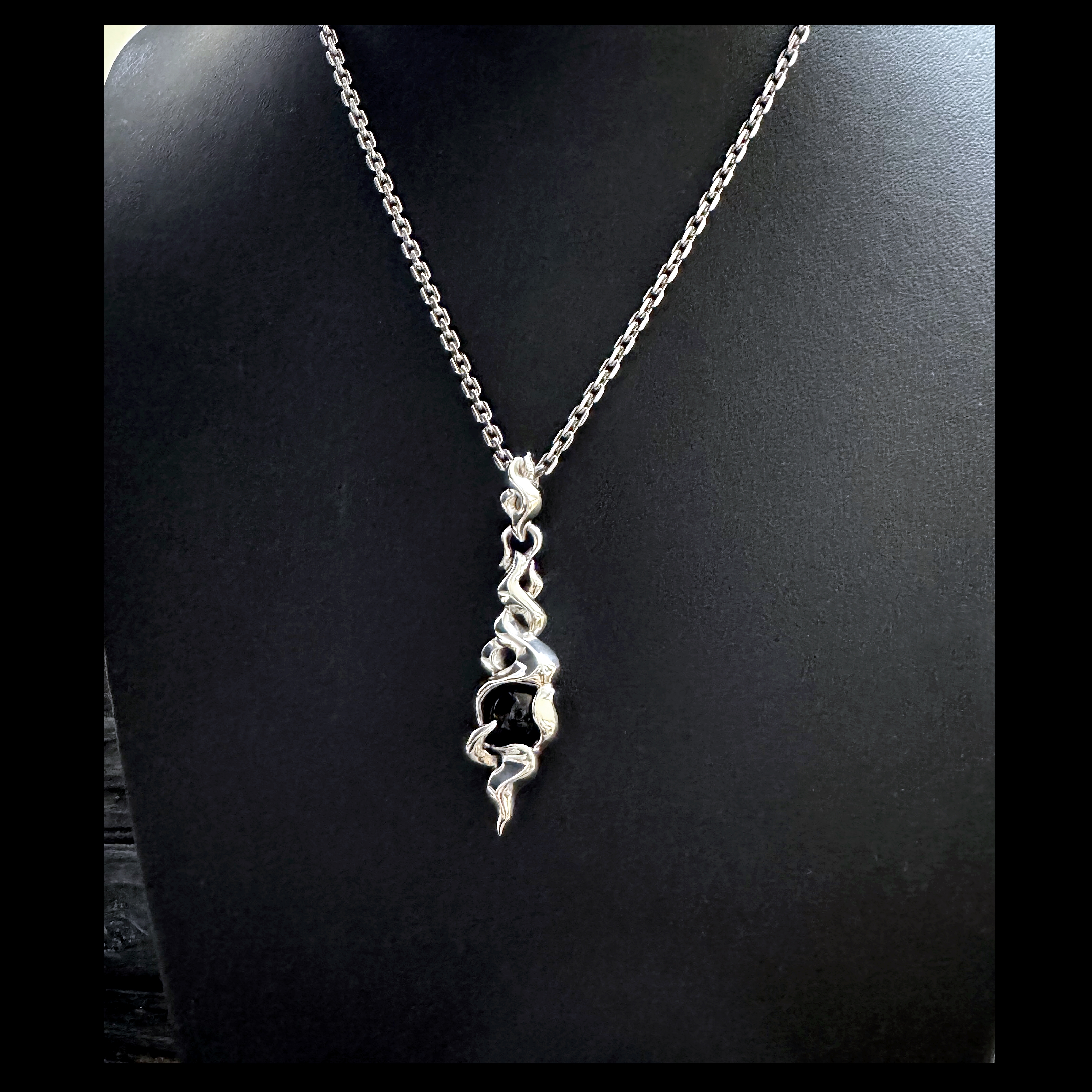 永恆之火吊墜,鑲嵌黑瑪瑙圓珠 ,華麗細緻,型格之選 材料:925純銀,黑瑪瑙 尺寸約 61mm x 16mm 配備包裝盒和擦銀布 現貨產品,付款後兩天內安排寄貨或直接到門市購買。 訂購產品,需時 2-4 個星期時間製作及運送,貨到後會立即安排寄貨或到門市取貨。
