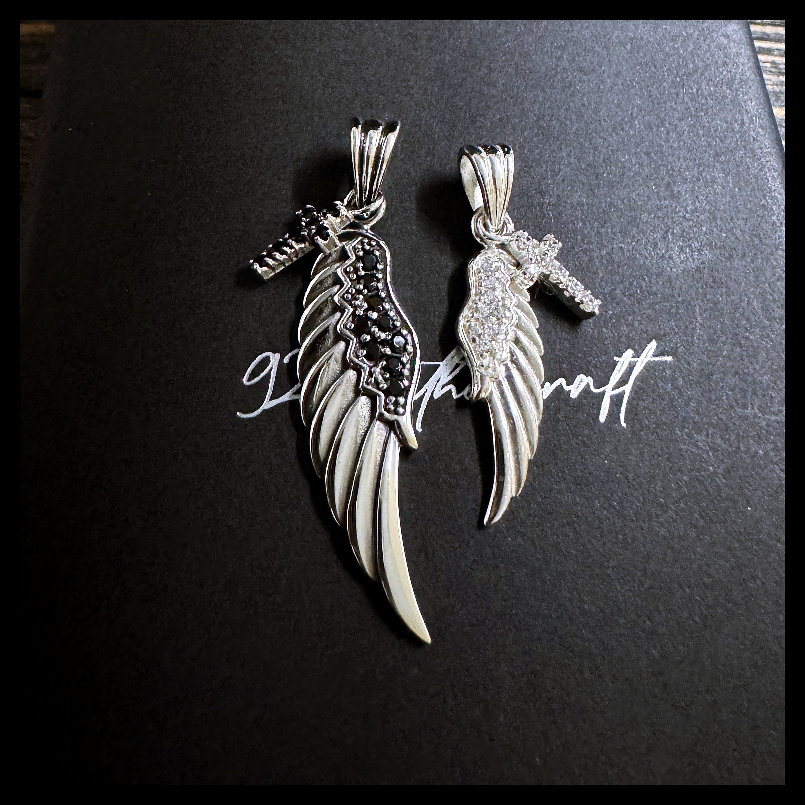銀革手作 925 純銀 黑白鋯石 十字架 羽翼 翅膀 吊墜