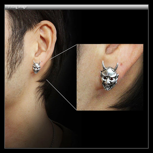 銀革手作 日本 oriental vibrations 925 純銀 紅白鋯石 立體 般若 耳環
