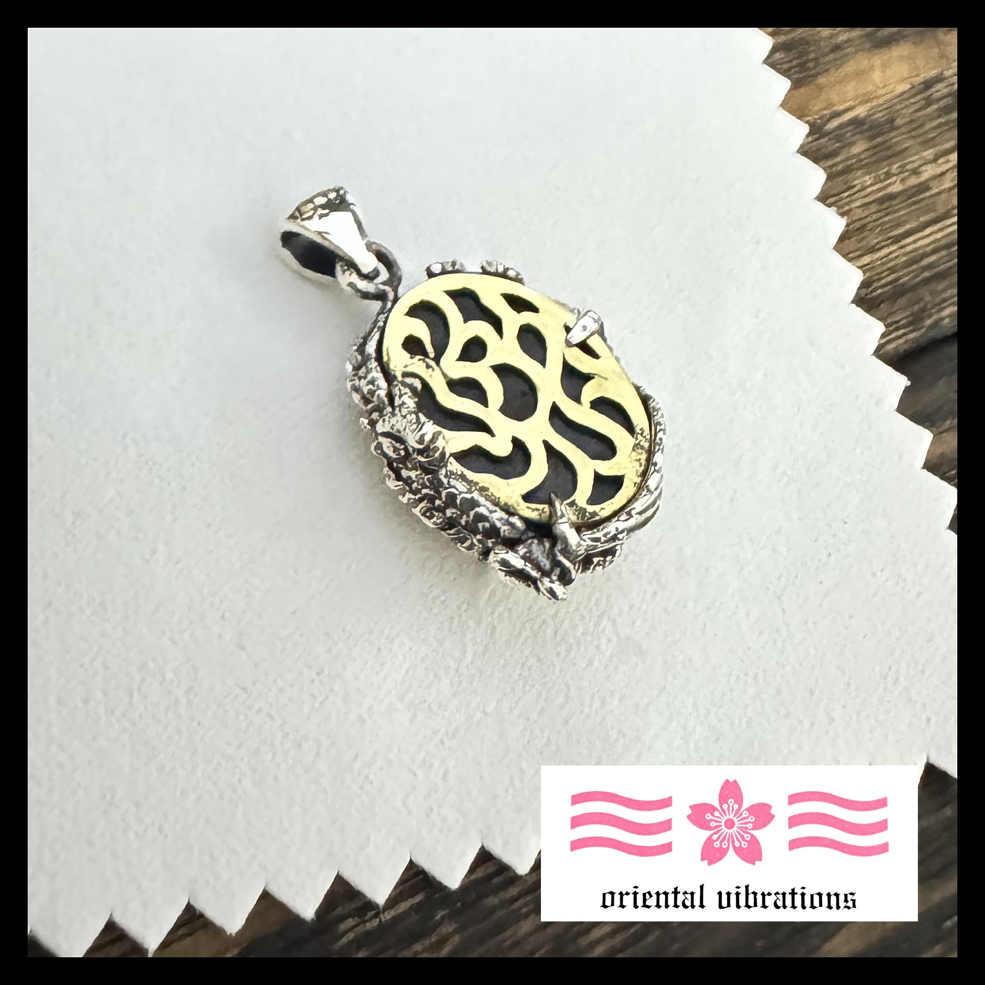 銀革手作 日本 oriental vibrations 925 純銀 綠琥珀 龍與鳳 吊墜