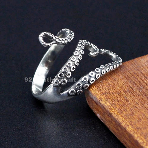八爪魚觸鬚戒指,做工細緻,別具一格 材質:925純銀 戒面高約 28mm 尺寸:開口 free size 配備包裝盒和擦銀布