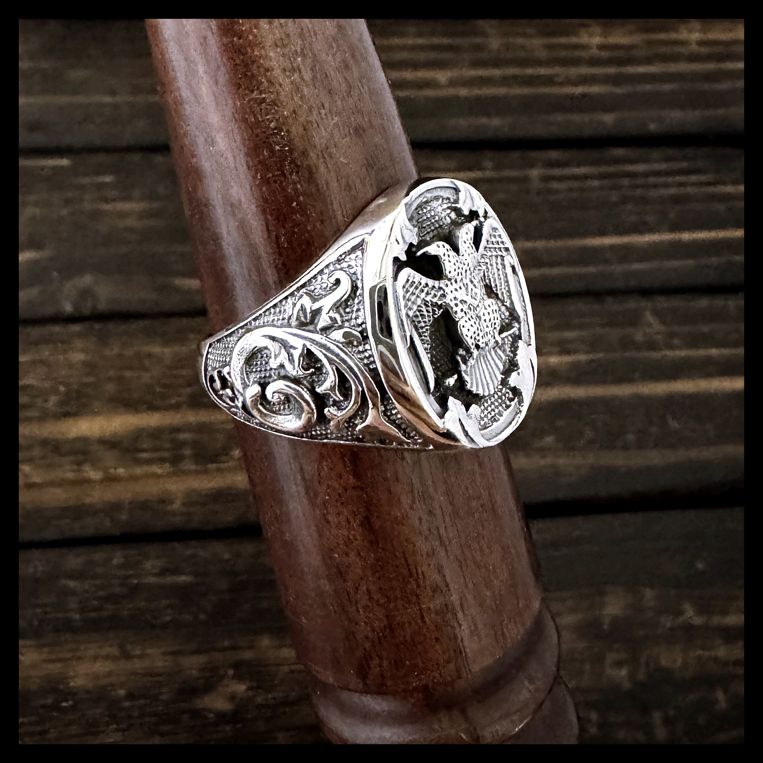 銀革手作 925 純銀 唐草紋 雙頭鷹 戒指