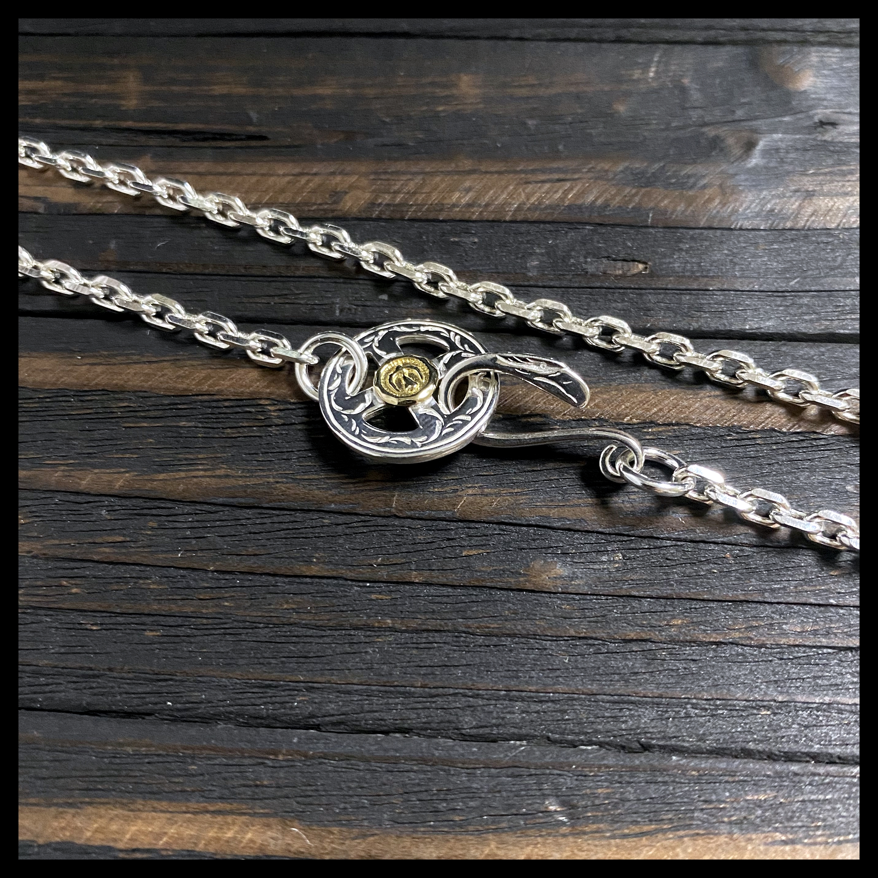 銀革手作 925 純銀 鷹頭鈎 點金十字唐草輪 頸鏈