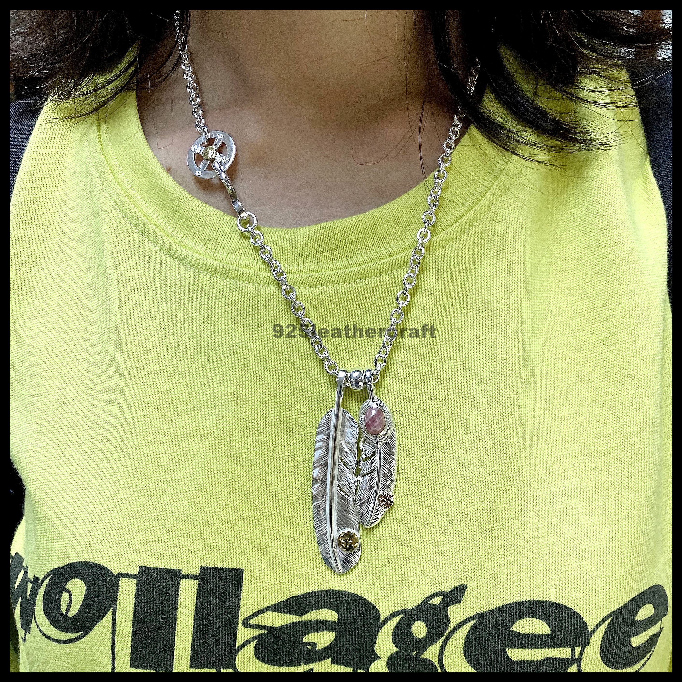 銀革手作 925 純銀 點金 櫻花 羽毛 feather set
